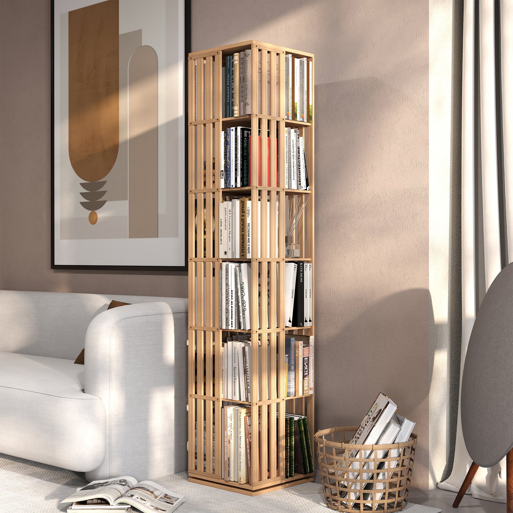 Kylize 360° Rotating Bookshelf with Storage Cabinets